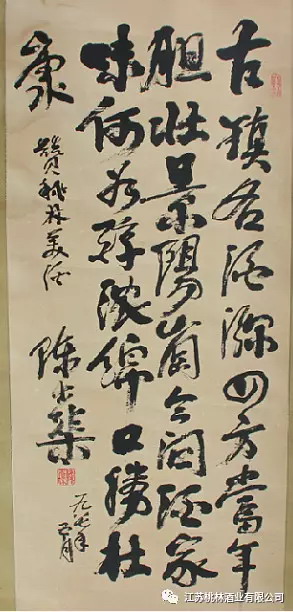 在當(dāng)時桃林酒廠傳為佳話。因歷史原因,桃林酒廠改制后,這首詩詞真跡不知去向。五一期間,公司專門邀請老工人回廠共話企業(yè)發(fā)展,酒廠老職工趙景陽回廠看到酒廠發(fā)展如此迅速,不禁心生感慨,他告訴公司董事長馬廣群,自己非常喜歡書畫,他在酒廠改制時曾收藏陳士渠、江渭清為桃林酒題寫的詩詞,現(xiàn)在桃林酒業(yè)發(fā)展壯大了,這些歷史文化的真跡,應(yīng)該回到這里。這兩首特定含義的詩詞將放在公司博物館,展示給前來參觀的游客。